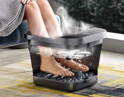 Bain de pieds pliable avec bulle chauffante et télécommande avec rouleau de massage manuel